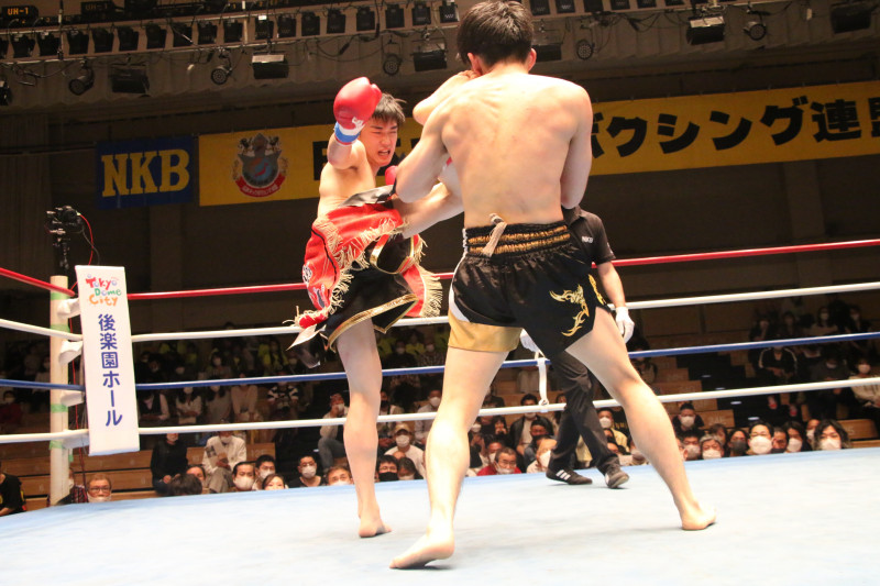 森井(左)は鋭い蹴りで佐藤を追い込んだ
