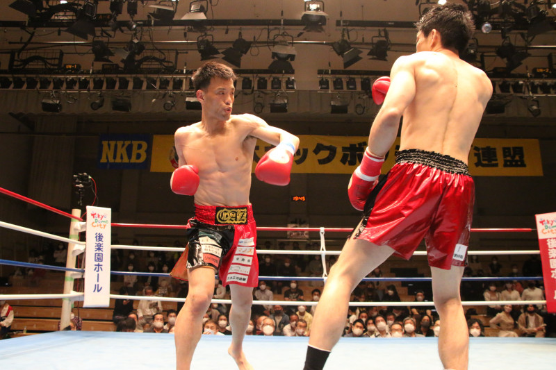 カズ(左)がパンチで野津からKOを狙う