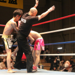 田村(左)は反撃したが、やや津崎に押されてしまったか