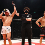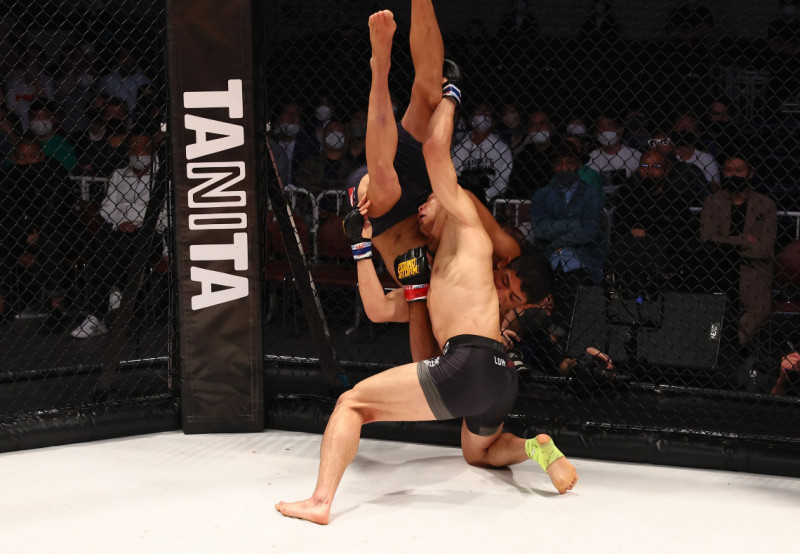 中村がチョークを仕掛ける相手を上から叩き落とす