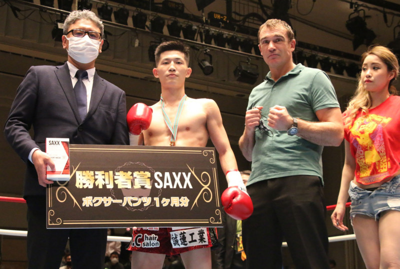 ピーター・アーツ(右から2番目)らと写真に収まる安本(左から2番目)