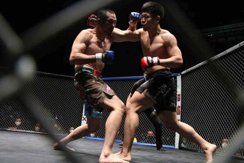 松岡(右)は冨樫からTKO勝利