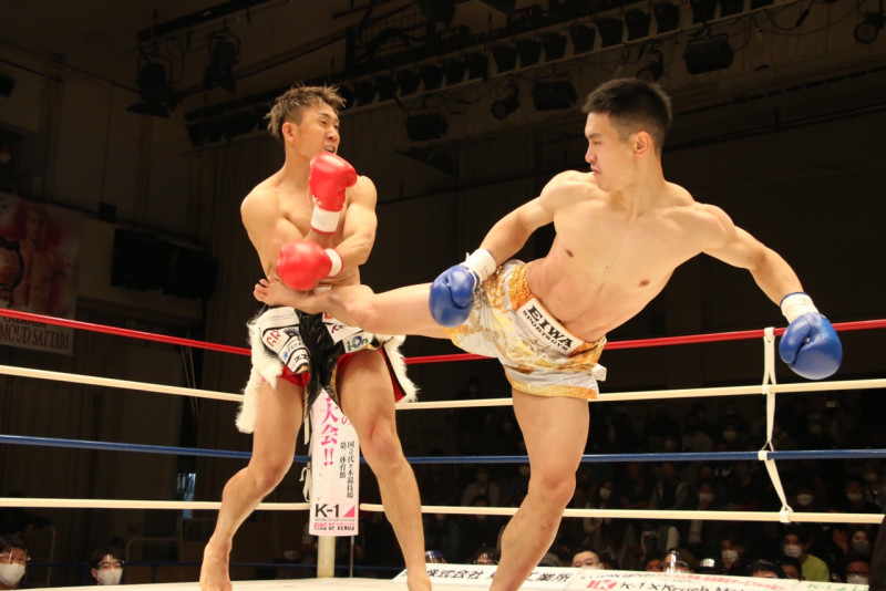森田(右)は後ろ蹴りで藤村をKOした