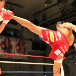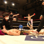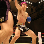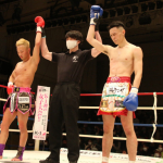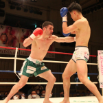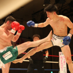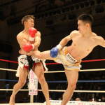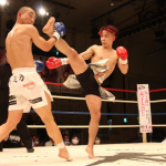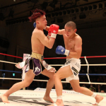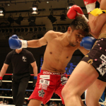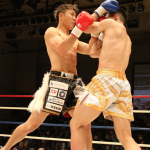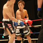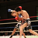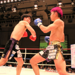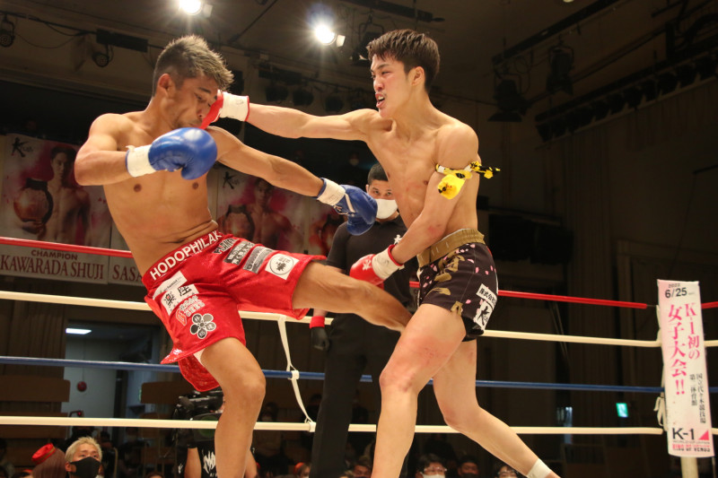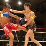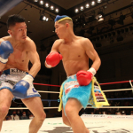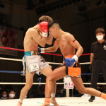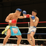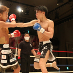 初防衛に臨んだ瓦田(右)。2Rは積極的に攻めてペースを掴みかけた