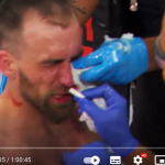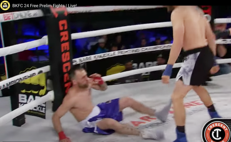 豪腕が鼻に直撃!戦意喪失する選手(BKFC公式YouTubeより)