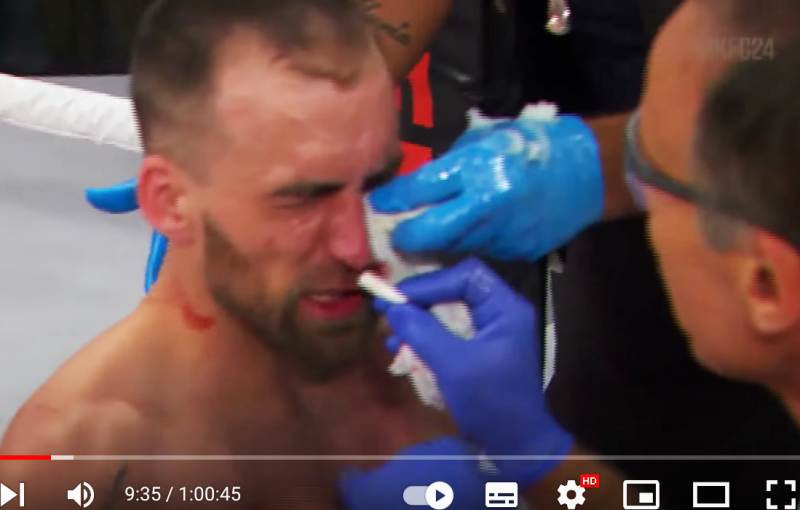 鼻に直撃のKO後、治療する選手(BKFC公式YouTubeより)