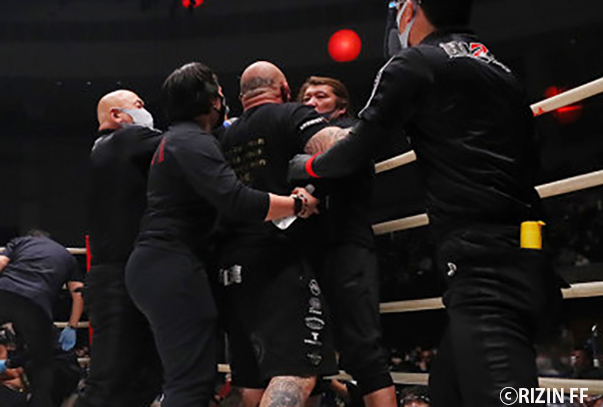 エンセンと内田ノボルがスダリオ戦で乱闘。内田がスダリオのKO後の追撃に怒り、突き飛ばしたことが発端(RIZIN27)