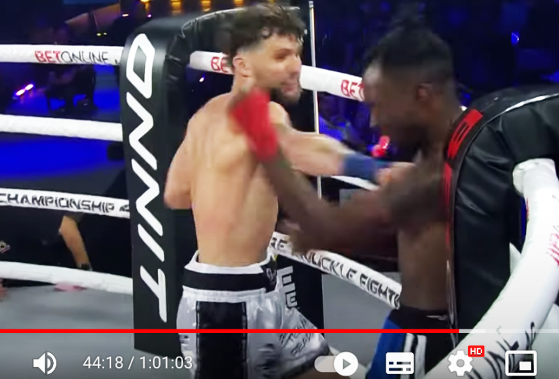 赤いマウスピース吹き飛ぶ衝撃シーン!強烈パンチで相手は戦意喪失(BKFC公式YouTubeより)