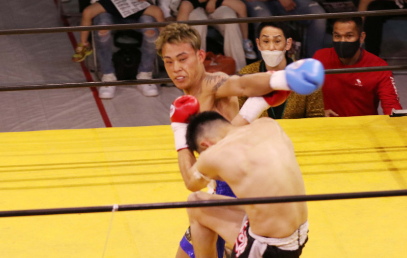 鉄也も大きなフックで反撃する