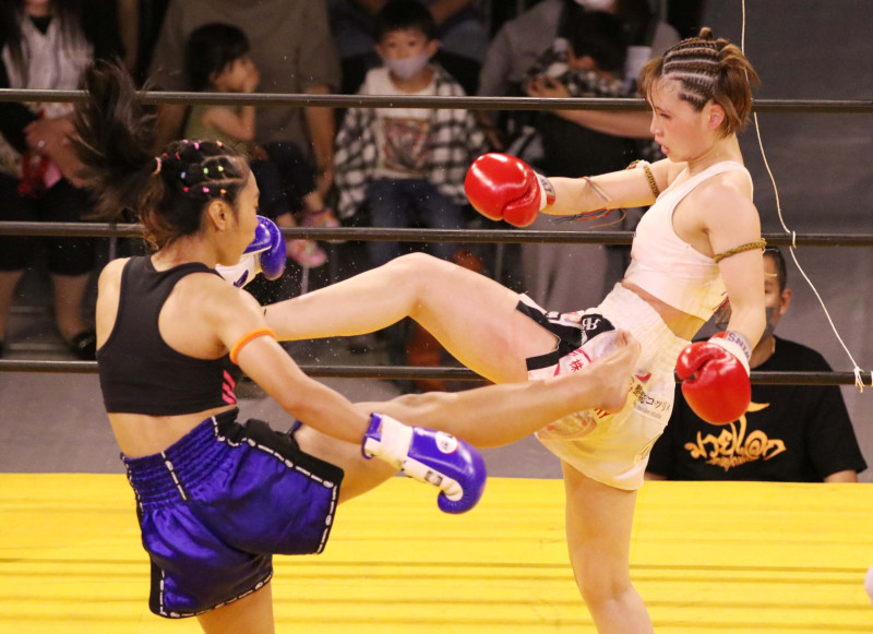 伊藤が前蹴りで突き放す