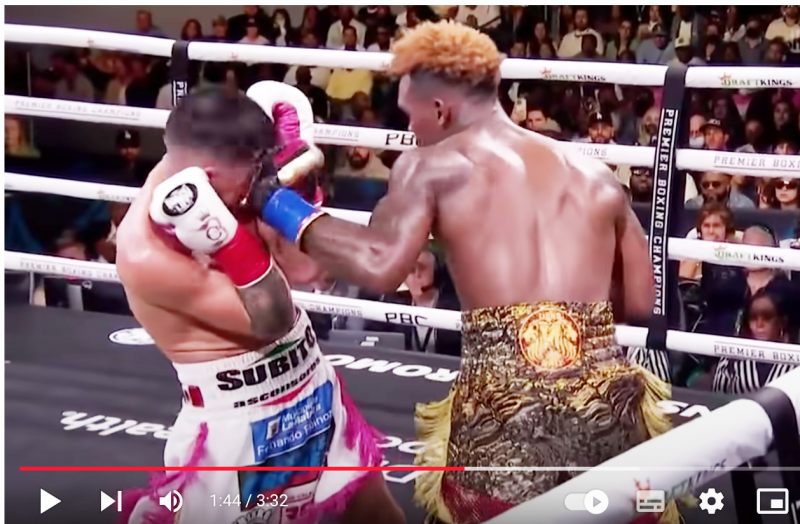最初のダウン。チャーロの左フックをテンプルにヒット(SHOWTIME Sports YouTube)