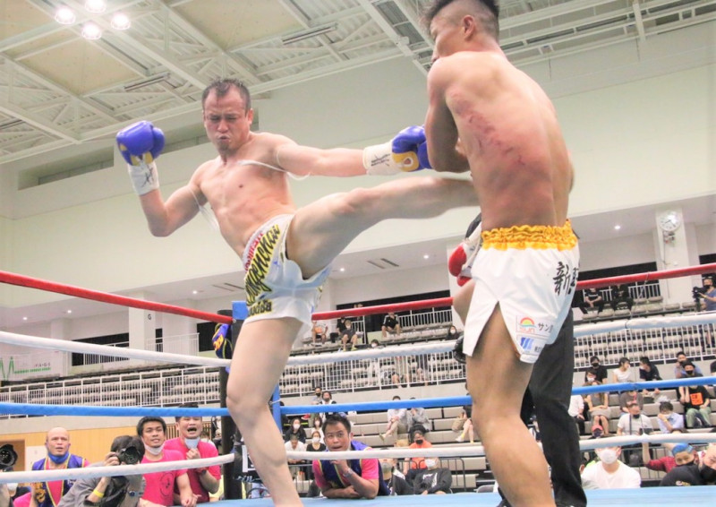 山浦(右)は、コンゲンチャイ(左)の左ミドルキックを受けて悶絶KO負け