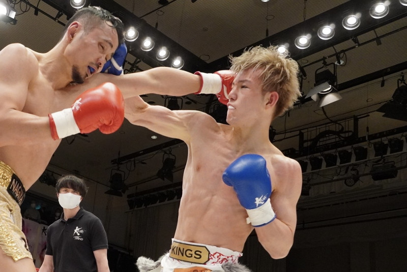 玖村(右)が新美(左)との削り合いを制して、ベルトを獲得