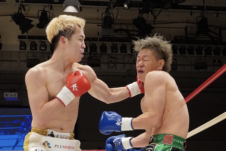 西元(左)が破壊力満点のフックをヒット