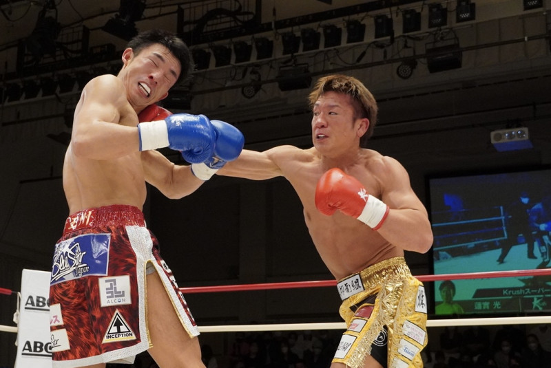 蓮實(右)が自慢のパンチをヒット