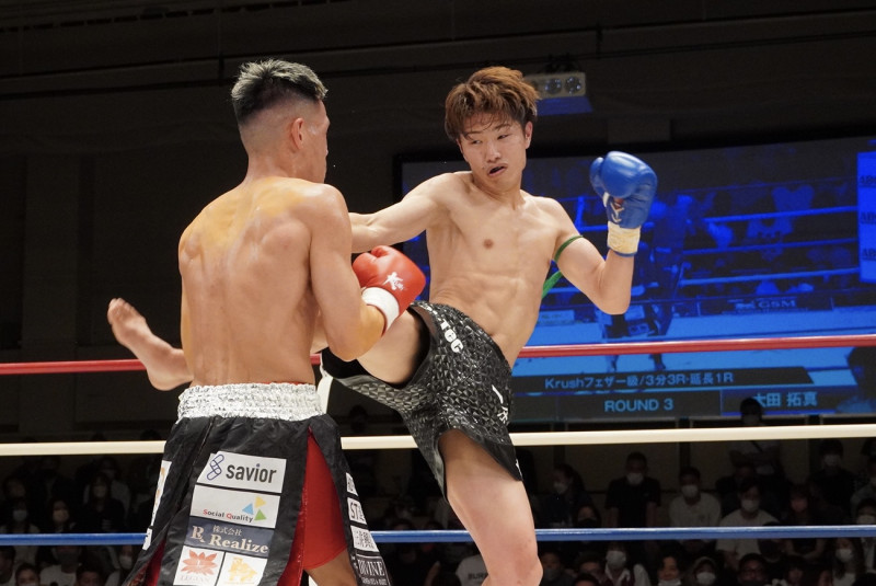 太田(右)が蹴りを中心に攻めて判定勝利を収めた