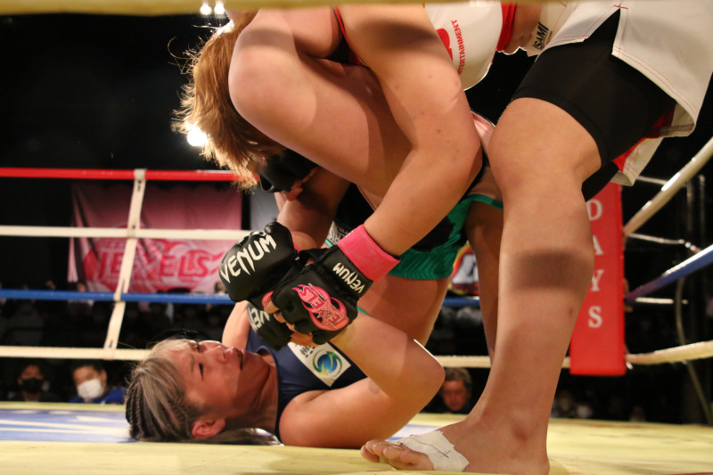 身長差17cmで注目されていた試合で熊谷(下)は三角絞めをゆりなに仕掛けた