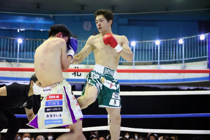 このインローからの右ストレートで最初のダウンを奪うルーカス(C)K-1