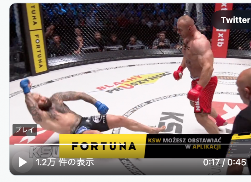 相手を豪快にダウンさせた(KSW Twitterより)