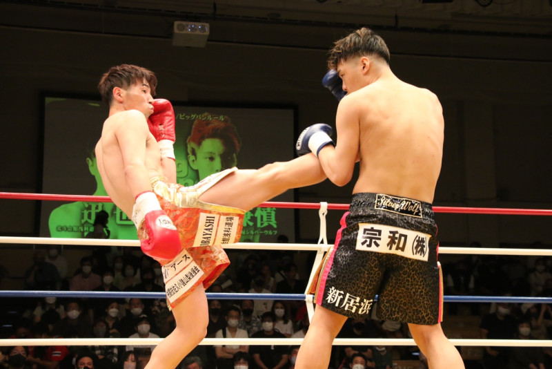 迅也(左)は前蹴りを仕掛けたがパンチをもらってしまう