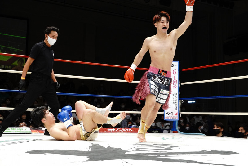 ダウンを奪った横山は嬉しそうな表情