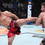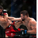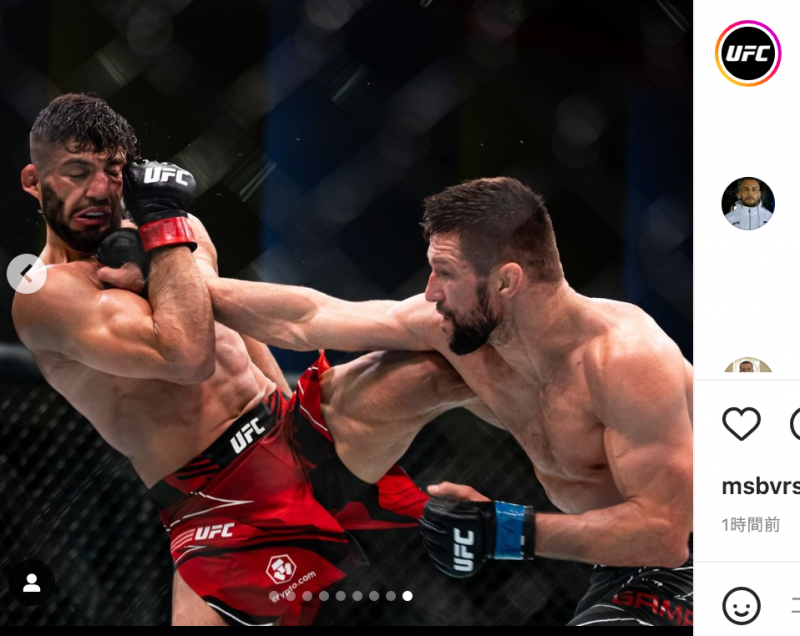 ガムロットの右ストレートが炸裂!ツァルキヤンの顔面が大きく歪む