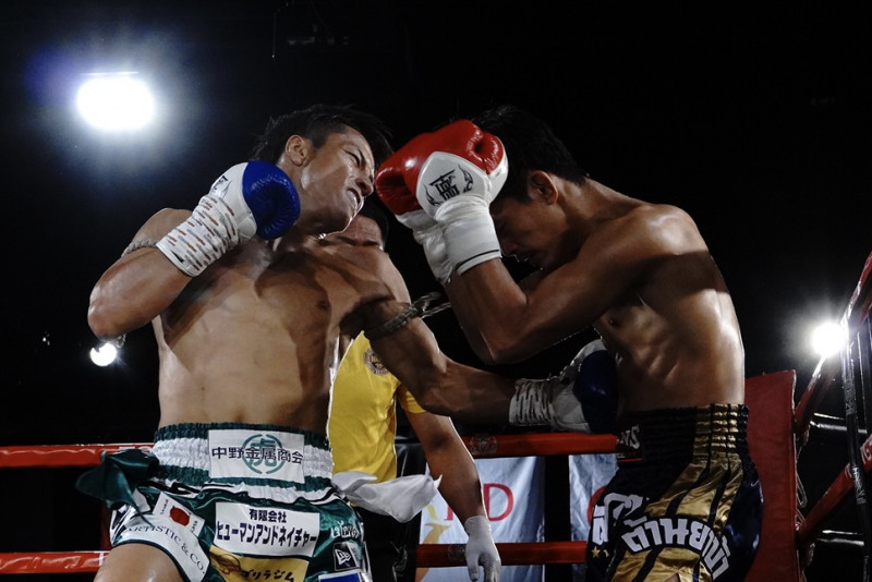 石井の強烈ボディブローが決まる