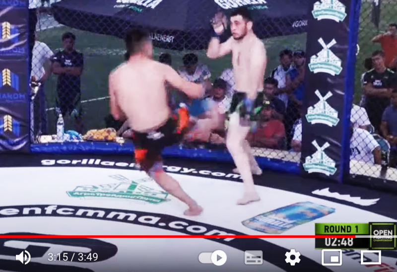 キルギス驚異の新人が戦慄のカーフキックKO!(OPEN FC GORILLA FIGHTING公式YouTubeより)