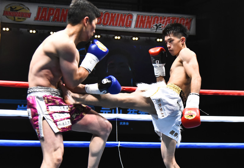前蹴りを放つ岩浪