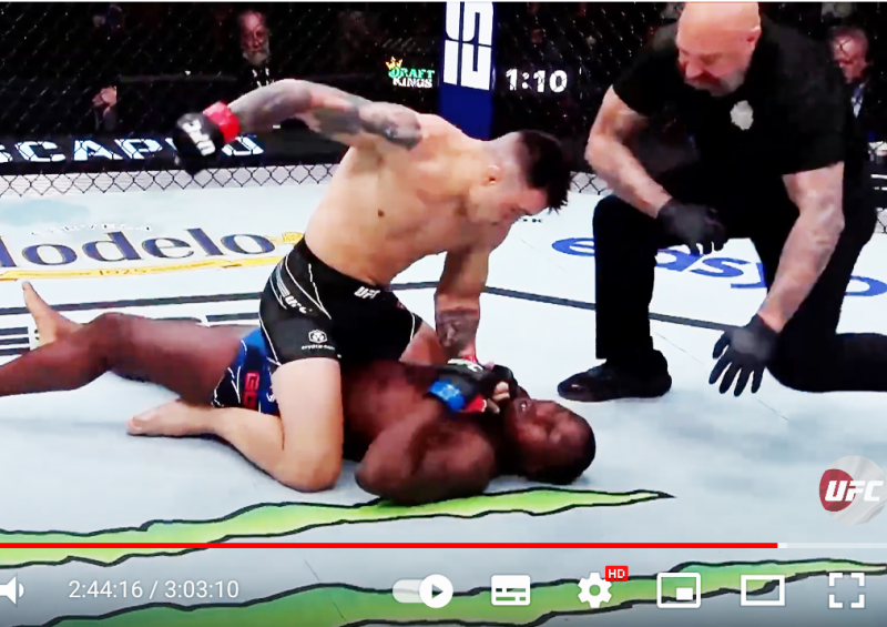 ブランデージが馬乗り状態からのパウンド連打で逆転KO!(UFC JAPAN公式YouTubeより)