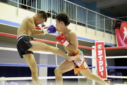 パンチを当てる宮川太陽(C)K-1