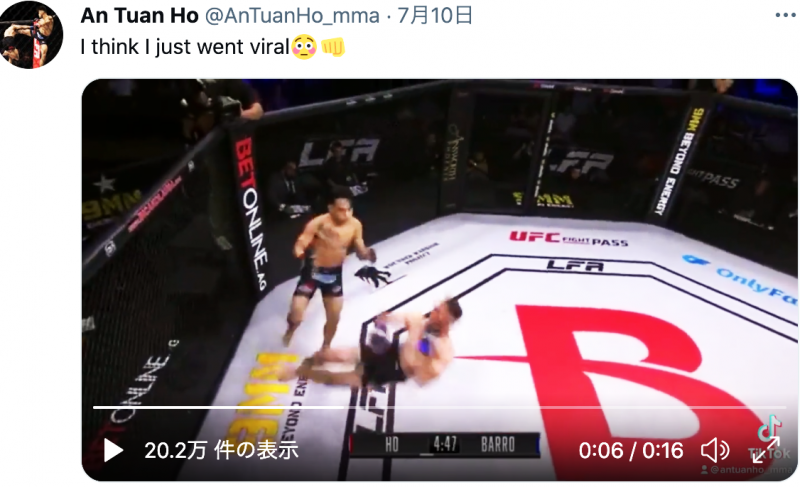 相手が宙に浮いて失神ダウン!戦慄のハイキック秒殺KO @antuanho_mmaより