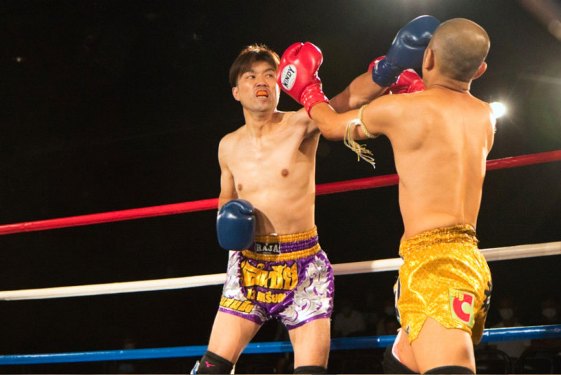 こってりパンチャー榊(左)の左ストレートがナオマサの顔面にヒット