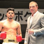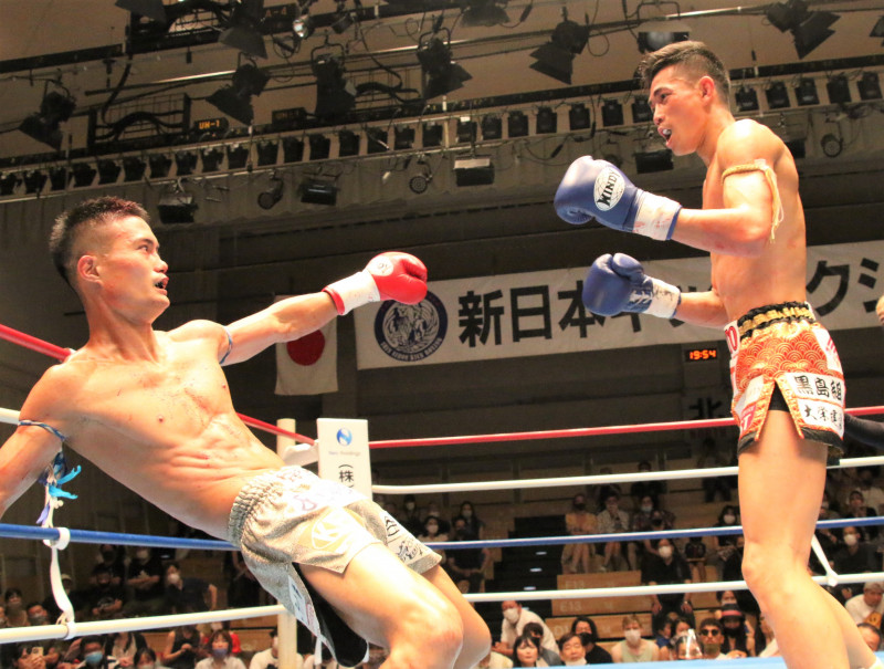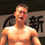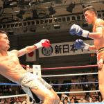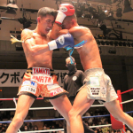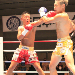 真吾のヒジ打ちをもらってダウンする重森