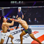 河名に強烈な左ストレートを当てるジョーンズ@lfafightingより