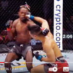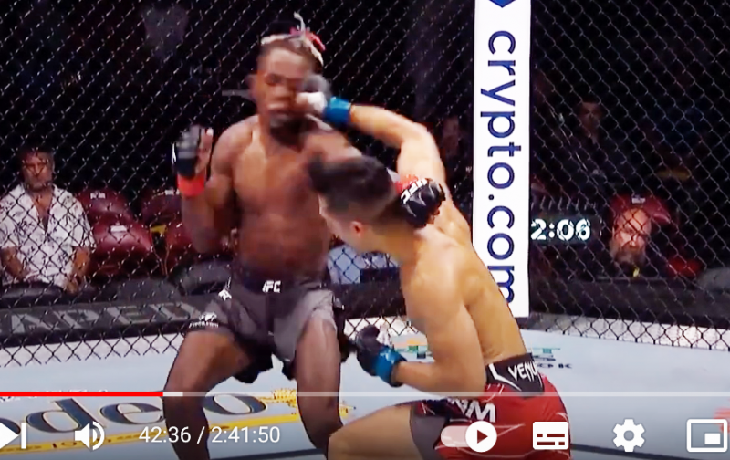 飛びヒザ蹴り回避からの豪腕パンチKO!(UFC JAPAN公式YoTubeより)