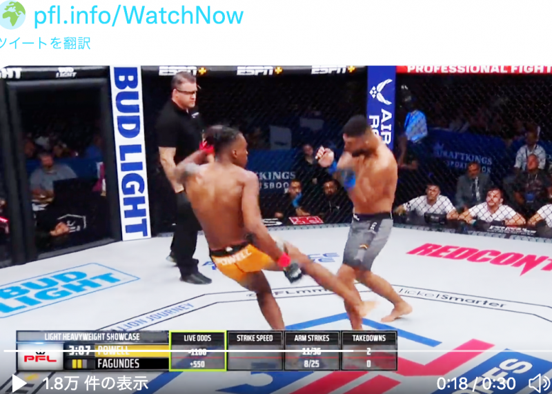 無敗の新人パウエルが強烈カーフキックKO!@PFLMMAより