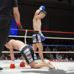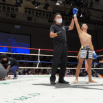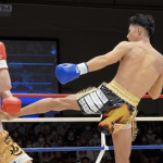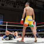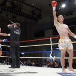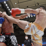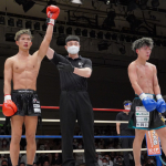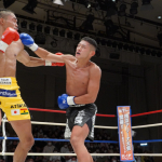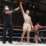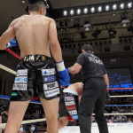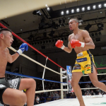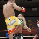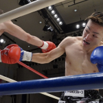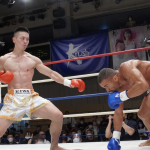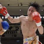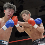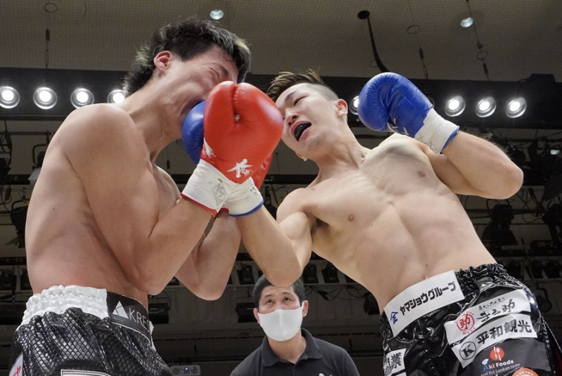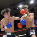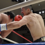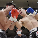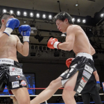 稲垣(右)が強烈なアッパーでアゴを突き上げる