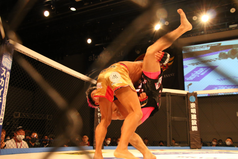 風我を抱え上げて落とした村元。テイクダウン数で風我を上回ったか