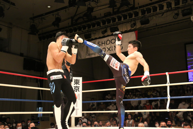 佐藤の多彩な蹴りが山田を襲う