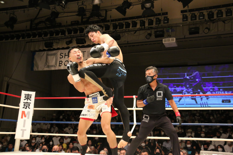 笠原の飛び膝蹴り!
