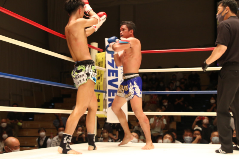 ヒジの打ち合いとなった 両者