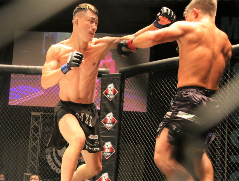 スソン(左)は齋藤翼(右)パンチで攻撃