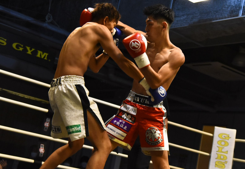 加藤(左)に1RKO勝ちした吉岡(右)
