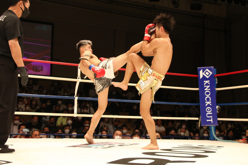 TAKERUは得意の前蹴りを入れるも押されてしまった