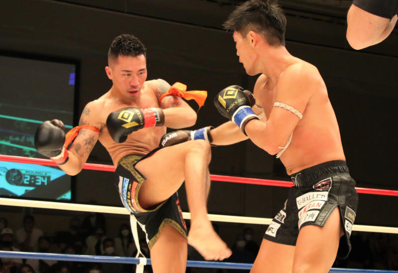 良太郎(左)はヒザ蹴り地獄で渡部(右)を下した