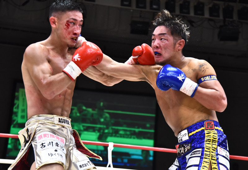 弘輝(右)が伊藤(左)を振り切って判定勝利した
