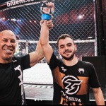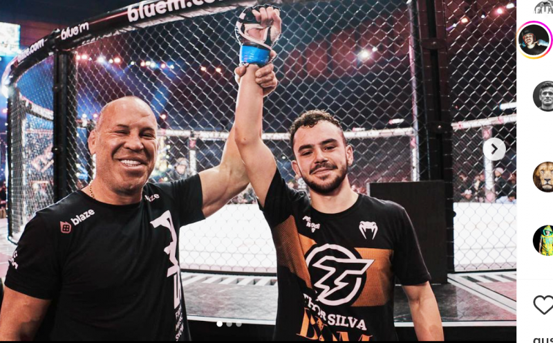 息子トール(右)のMMAデビユー戦勝利に喜ぶシウバ(左)@thorsiilvaより
