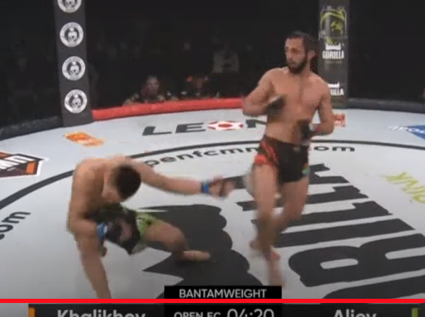 2、ダウンする相手(OPEN FC GORILLA FIGHTING公式YouTubeより)