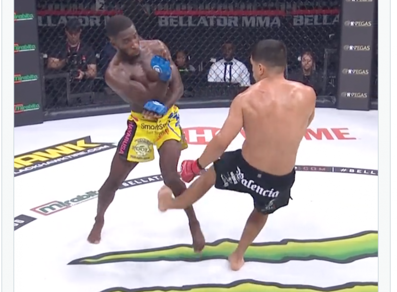 1、ローキック自爆骨折!蹴り後にスネが“グニャリ”@BellatorMMAより